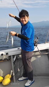 船中、ハガツオ 1本 サバ、釣る人で4匹…