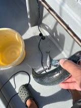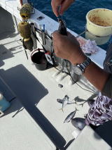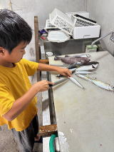 AM6:30 〜 出船しました。。 ホントは夜釣りでの出船予定だったんですが予定変更して昼釣りでの出船しました。 最近の昼釣りでは調子良かったので期待“大”でしたが… 朝一、アジは好調? アジにマトウダイ・ネイゴを加え… ![]() でも長くは続かず… 移動… ![]() 続いてチダイ。。ちっちゃ… ![]() またアタリは途絶えまして… 我慢してマキエを続けられない(笑) ![]() 移動後はイトヨリ(*^^*) これは嬉しいお土産に。。 ![]() その後は、マキエを続けてると… サバが猛攻。。 ![]() サバが掛かってるのを放置してると(^-^; サビキがぐちゃぐちゃ… ![]() そして特大“サバフグ”が… ![]() なんか釣れるたびにサイズアップされていくような。。 ![]() PM1:30 〜 片付け・帰港しました。。 帰港後、長男がアジ・サバ・うるめいわしなど捌くの練習。。 ![]() 明日も昼釣り出船予定です。。