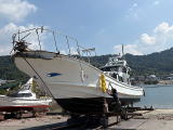 10/1 | 昨夜の出船時からドックの段取りしまして… 最近の釣果や予約状況見ながら....昨夜、決めまして… 午後から古江港へ回航。 どうにか上架しまして船底の清掃。。船体のオモテからトモまでビッシリ… ![]() ![]() 夕方まで、高圧洗浄機掛けて洗い流しました。 ![]() いやぁ~~..頑張りました。 ![]() 明日は早朝より船底塗装しまして夕方から出船予定です。 ![]() ![]() |