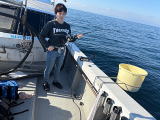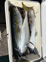 AM6:30 〜 出船しました。 先週の土曜日のブリ爆釣した際の..お客様もリピートで、また来てくれました。 他にも更に乗船… 「ありがとうございました」 ![]() ポイント着いてマキエしてるとアジの魚影が濃くなりだすと… ![]() ブリ・マトウダイなども姿を見せてくれました。 ブリも続々と… ![]() ![]() 先週も、お客様から「もうブリはいい…」 今週も・・・ 今日は日曜日って事もあって、ウチの次男も参戦してましたが… ![]() ブリは順調に釣果を伸ばし… アタリも多い。。 ![]() ブリの他には真鯛も… ![]() そして今日は千葉から“釣り体験”のお客様も親子で参戦。。生きた魚、触った事ないって..お子さんでしたが朝一は触れなかったアジ・ブリも帰る頃には馴れて触れるようになりまして… いい釣行になったのでは… ![]() ブリは船中、20本ほどの釣果になりました。。ハガツオは船中、1本のみ… PM1:00 〜 片付け・帰港しました。。 ![]() 帰港後はIRIEにてブリの解体したり… 魚の発送したり…