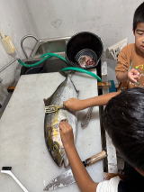 | 11/2 | 朝から船の片付けを… 長男と次男が早起きで手伝ってくれてたんですが、午前中で古江へ.. 今日は、「みなとまつり」で家族で出掛けました。![]() まずは次男がカンパチつかみ取り 午後からは長男もカンパチつかみ取り… ここでカンパチ2本。。 最後は、カンパチの重量あてで..当たっちゃいました!! 結局、カンパチ3本..持ち帰る事に。。 帰ってからは、子供達にもカンパチ捌くのを教えてました。 ウロコ取りでウロコ取ってたり..でもウロコ取りじゃ苦戦するの分かってて見てたんですけど… ![]() まずは自分で思うようにさせようかと… 明日も出船予定は立てず… 雑用をこなします。 |