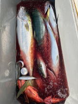 AM6:30 〜 出船しました。 今週の日曜日も、ウチの次男が参戦しました。 ポイント決めてマキエをしてると..アジが(*^^*) ![]() まずは、ウッカリカサゴ!(^^)! ![]() そしてアタリは途絶え… ポイント移動..ベイトの反応を探しながら....ウロウロ(;^ω^) ベイトの反応、見つけても..なかなかアタリは少なく、単発的にアジが釣れる程度で… ![]() 日が登ると昨日は寒かったのに今日は暖かい… 防寒着、脱いで… ウチの次男は肌着になって水遊びしてました。。 ![]() 「釣れないから、帰ろう!」なんて次男は言い出す始末… たまらず移動を… 移動後は・・・ アジが釣れだせば… マトウダイも型見されました。。 ![]() そして..やっと(*^^*) ベイトの反応も盛り上がり… ![]() 1本目? ![]() 「今日はダメだ!!」と諦めてたんですが… 更に… ![]() 2本目!! ![]() そのあとも続々と… バラシもあったりしましたが… 船中、ブリは5本でした。 ![]() PM1:30 〜 片付け・帰港しました。